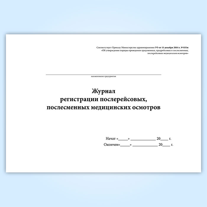 Журнал регистрации послерейсовых, послесменных медицинских осмотров в Химках купить