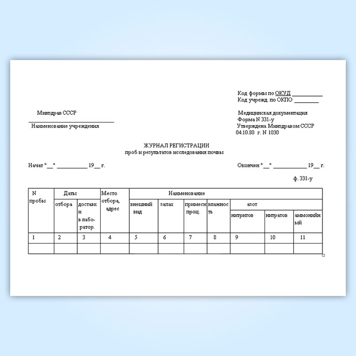 Журнал регистрации проб и результатов исследования почвы (форма № 331-у) в Химках купить