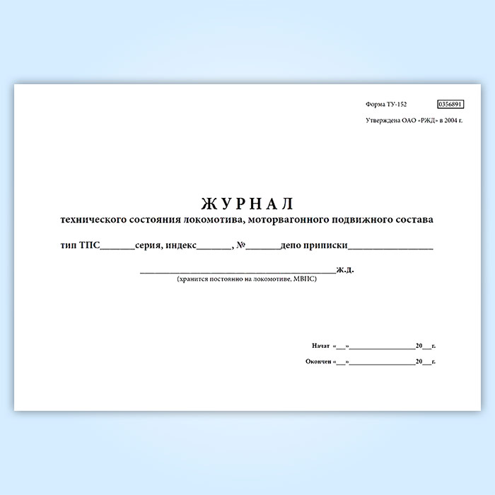 Журнал технического состояния локомотива, моторвагонного подвижного состава (форма № ТУ-152) в Химках купить