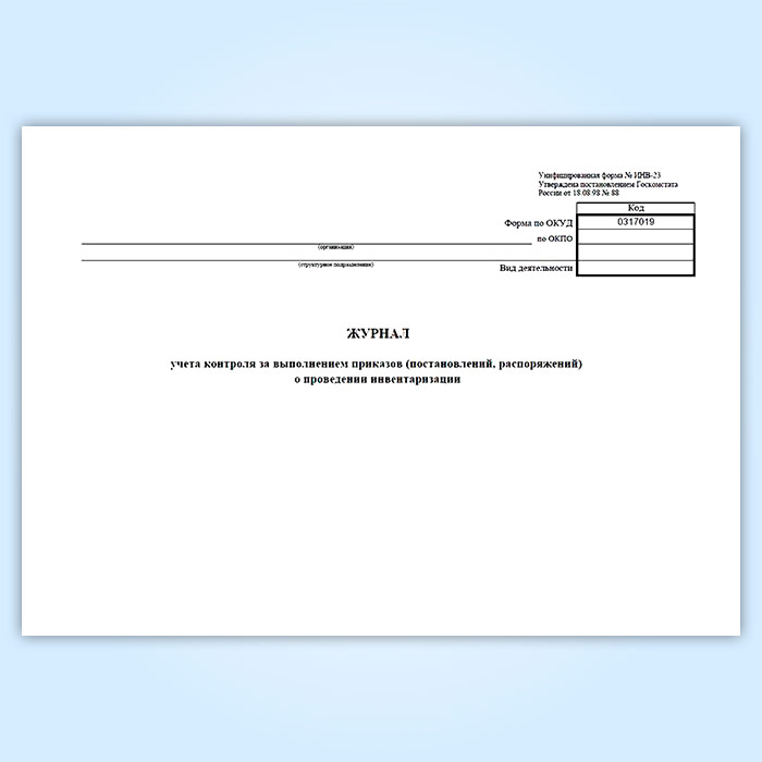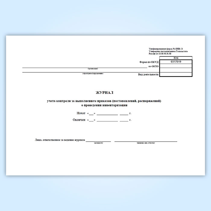 Журнал учета контроля за выполнением приказов (постановлений, распоряжений) о проведении инвентаризации (унифицированная форма ИНВ-23) в Химках купить