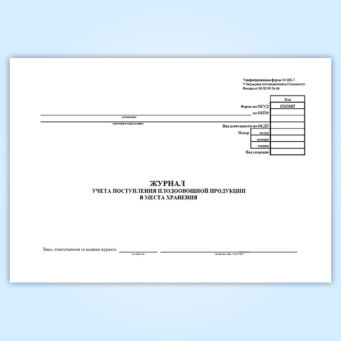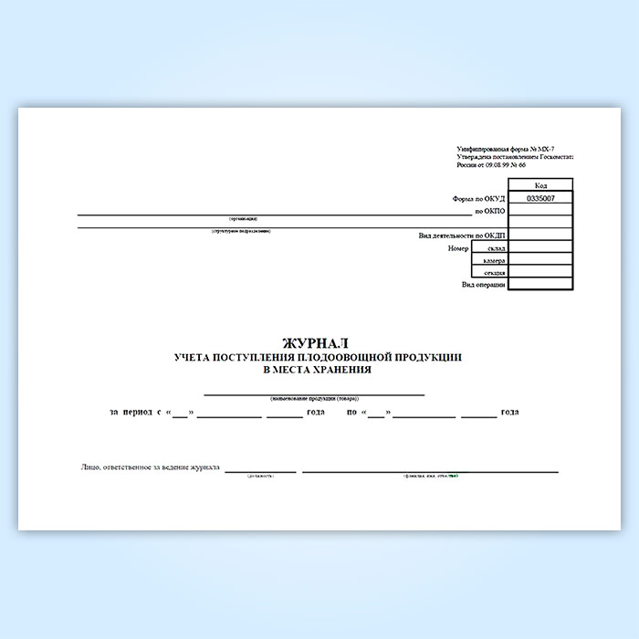Журнал учета поступления плодоовощной продукции в места хранения (форма МХ-7) в Химках купить