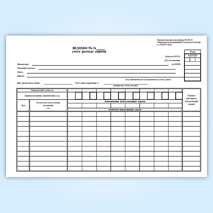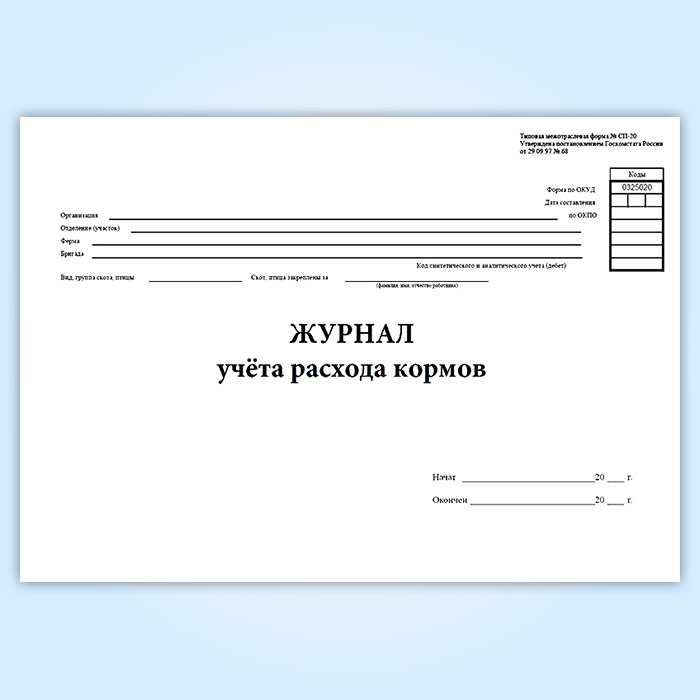 Журнал учета расхода кормов (форма № СП-20) в Химках купить