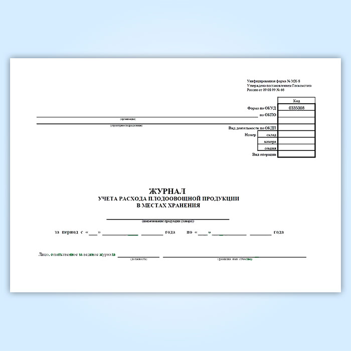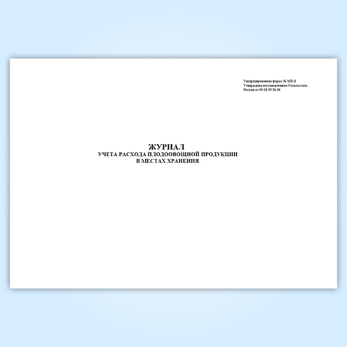 Журнал учета расхода плодоовощной продукции в местах хранения (форма МХ-8) в Химках купить