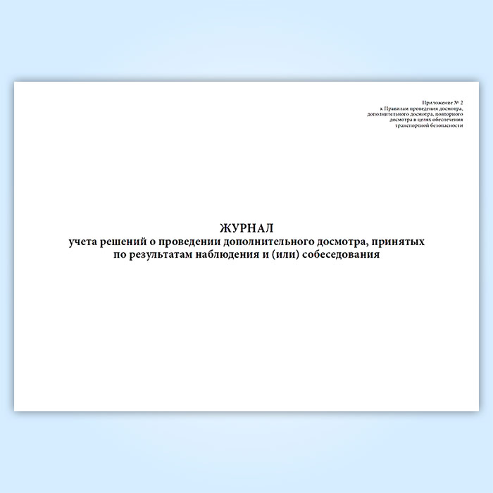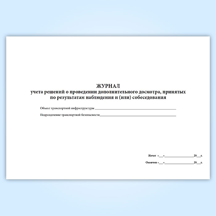Журнал учета решений о проведении дополнительного досмотра, принятых по результатам наблюдения и (или) собеседования в Химках купить