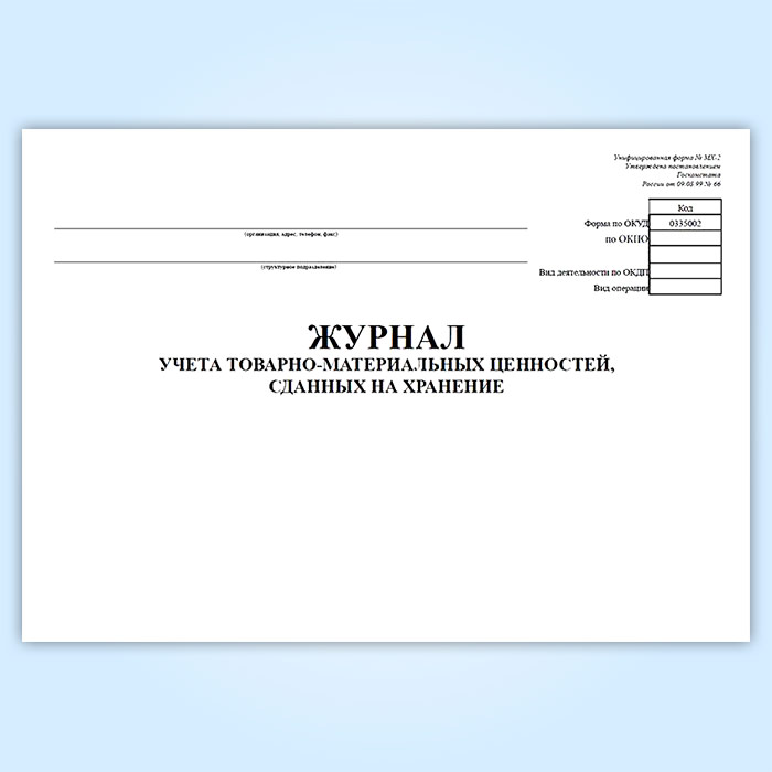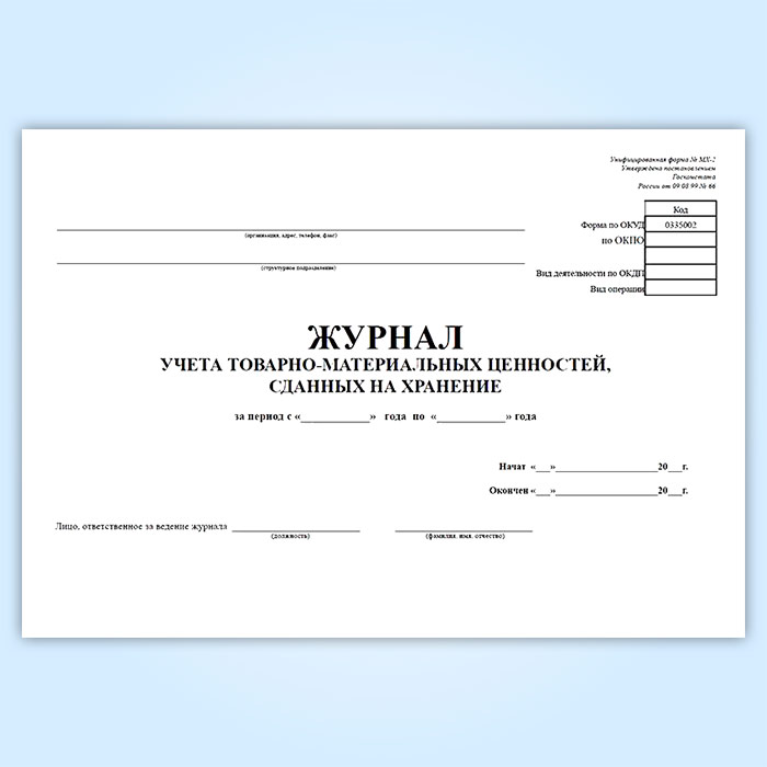 Журнал учета товарно-материальных ценностей, сданных на хранение (форма № МХ-2) в Химках купить