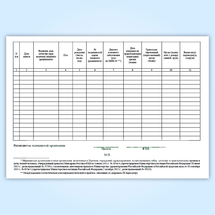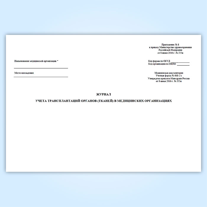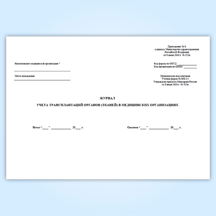 Журнал учета трансплантаций органов (тканей) в медицинских организациях (форма № 008-2/у) в Химках купить