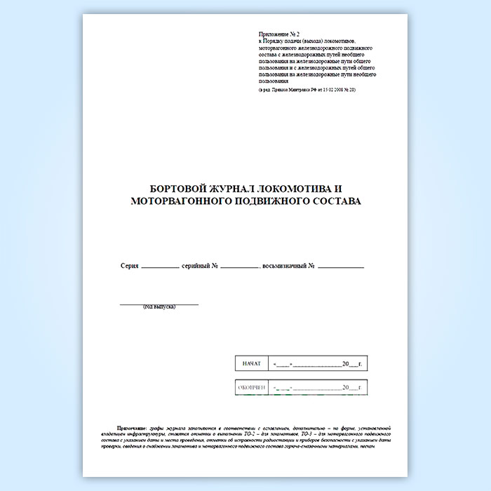Бортовой журнал локомотива и моторвагонного подвижного состава в Химках купить