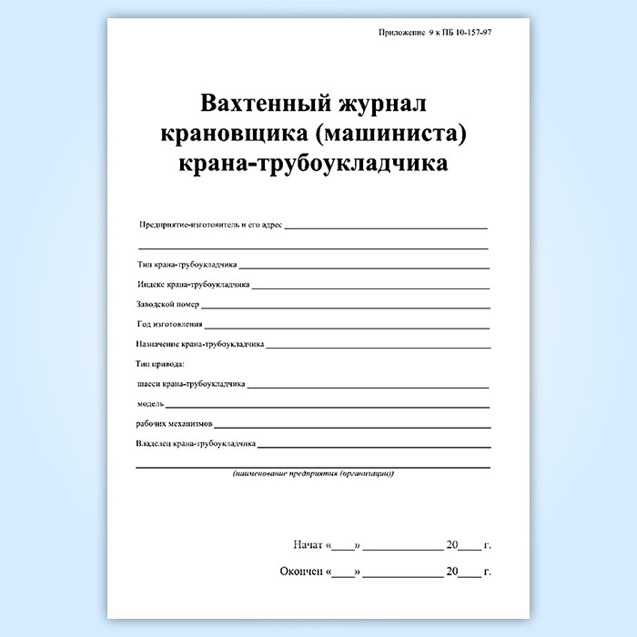 Вахтенный журнал крановщика (машиниста) крана-трубоукладчика в Химках купить