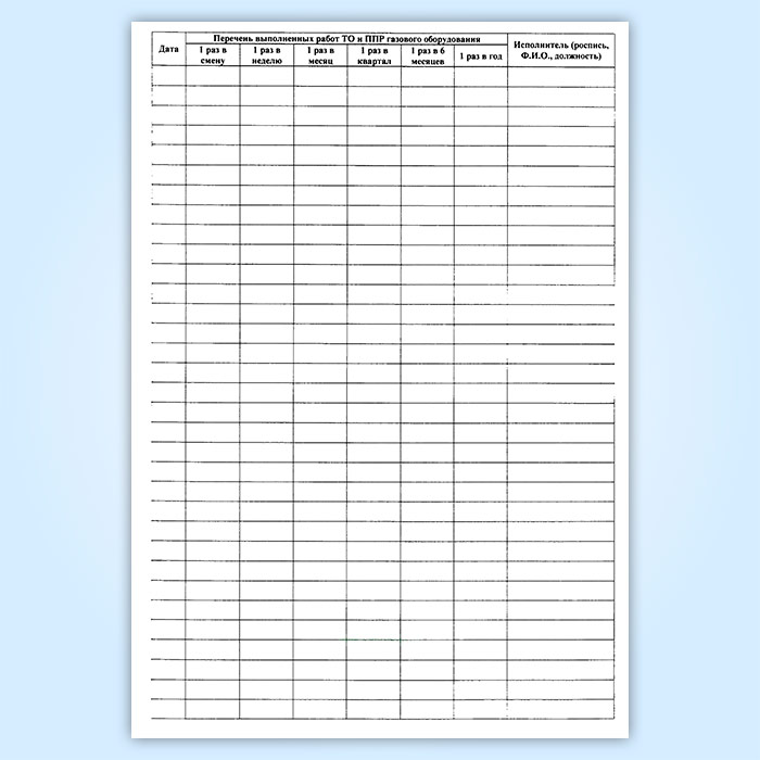 Журнал выполненных работ по техническому обслуживанию и ППР газового оборудования систем газоснабжения ГРС и ДО в Химках купить