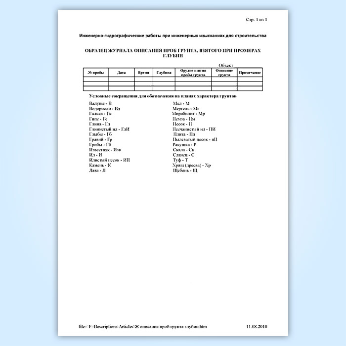 Журнал описания проб грунта, взятого при промерах в Химках купить