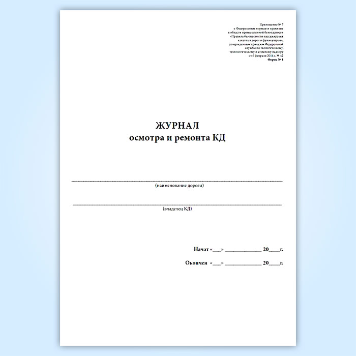 Журнал осмотра и ремонта канатной дороги. Несущий канат (форма № 1) в Химках купить