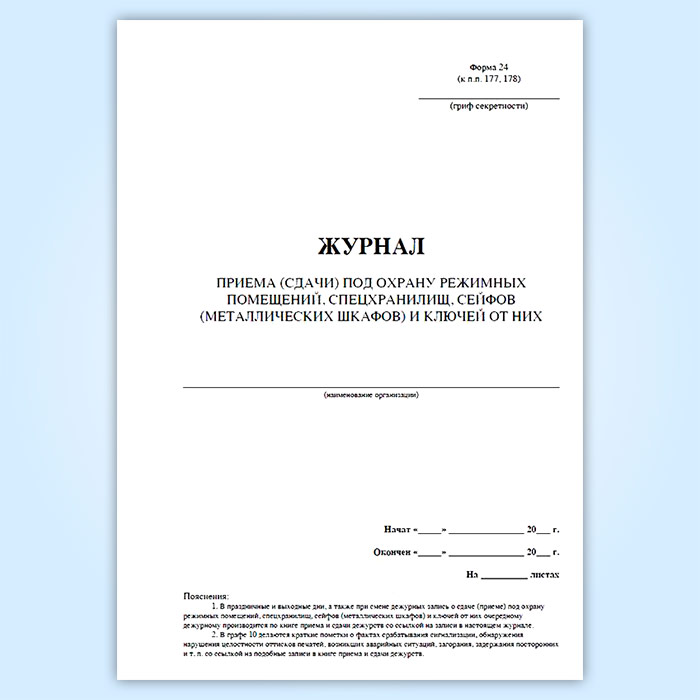 Журнал приема (сдачи) под охрану режимных помещений, спецхранилищ, сейфов (металлических шкафов) и ключей от них в Химках купить