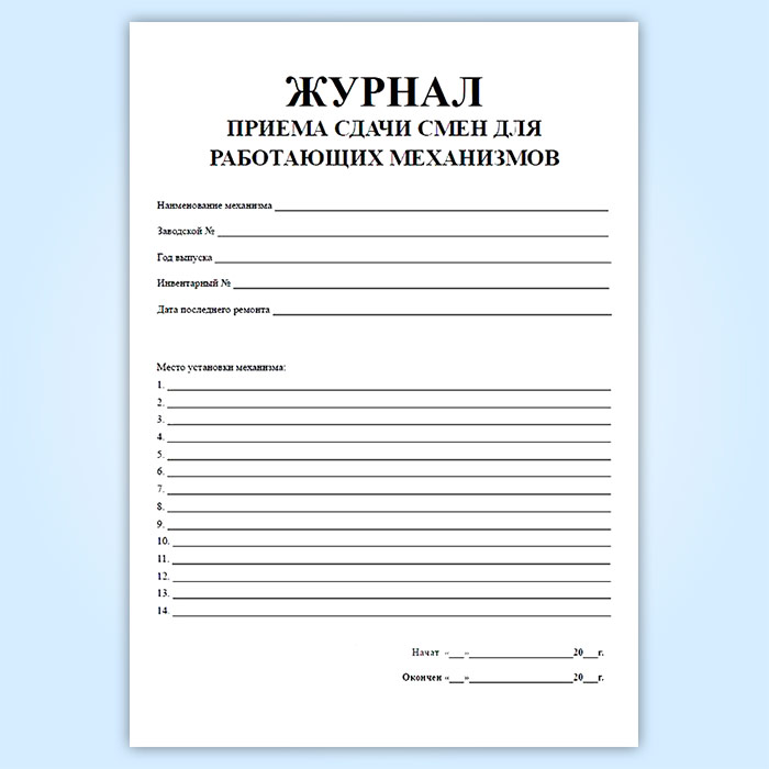 Журнал приема-сдачи смен для работающих на механизмах в Химках купить
