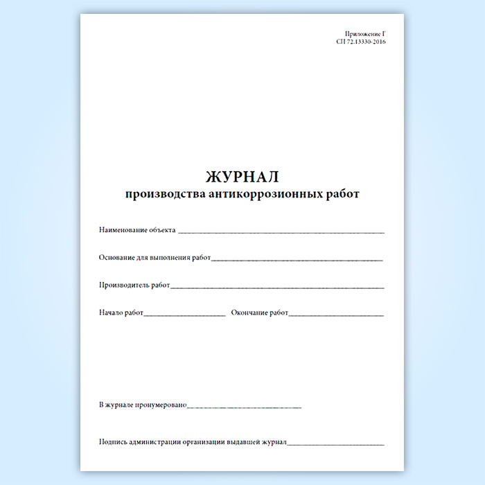 Журнал производства антикоррозионных работ в Химках купить