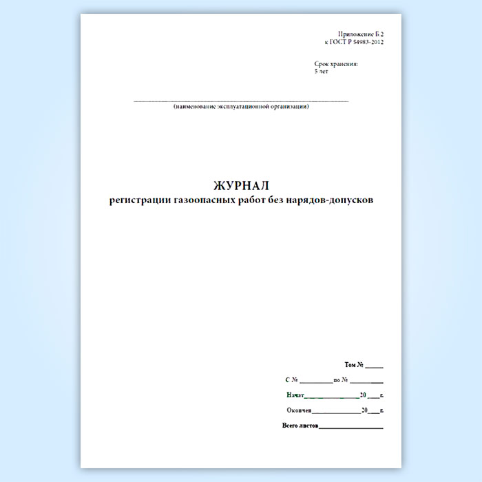 Журнал регистрации газоопасных работ без нарядов-допусков в Химках купить