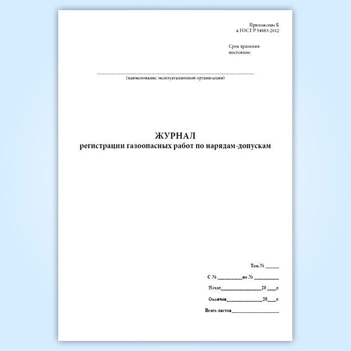 Журнал регистрации газоопасных работ по нарядам-допускам в Химках купить