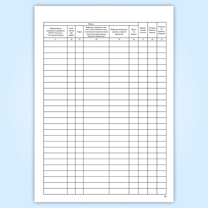 Журнал регистрации операций, связанных с оборотом наркотических средств и психотропных веществ дежурной (процедурной) медицинской сестры в стационарном отделении медицинской организации в Химках купить