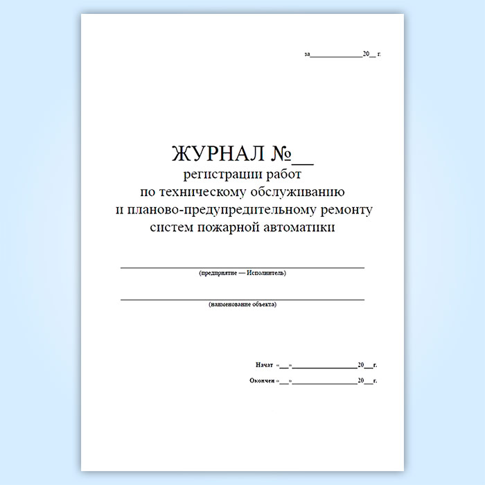 Журнал регистрации работ по техническому обслуживанию и планово-предупредительному ремонту систем пожарной автоматики в Химках купить