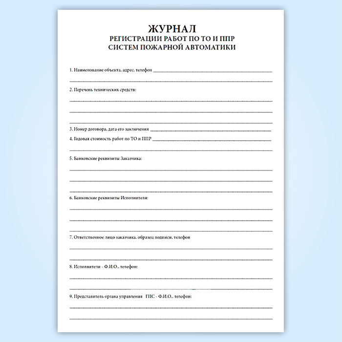 Журнал регистрации работ по ТО и ППР систем пожарной автоматики в Химках купить