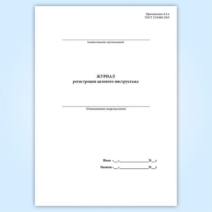 Журнал регистрации целевого инструктажа (ГОСТ 12.0.004-2015) в Химках купить