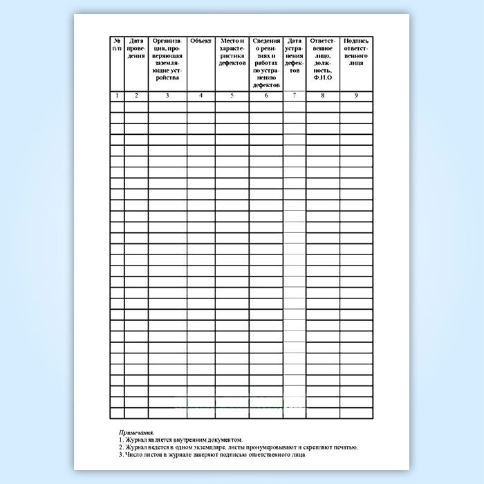 Журнал результатов ревизий устройств молниезащиты, проверочных испытаний заземляющих устройств (форма Б.30) в Химках купить