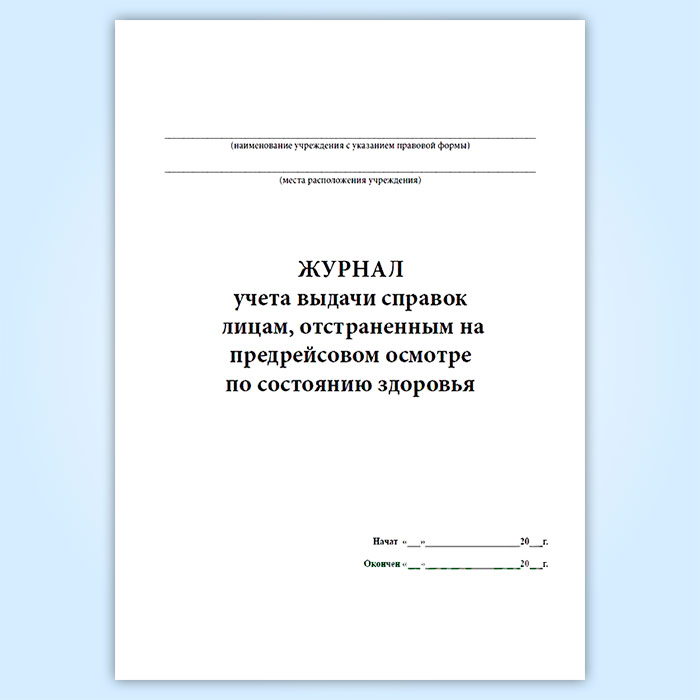 Журнал учета выдачи справок лицам, отстраненным на предрейсовом осмотре по состоянию здоровья в Химках купить