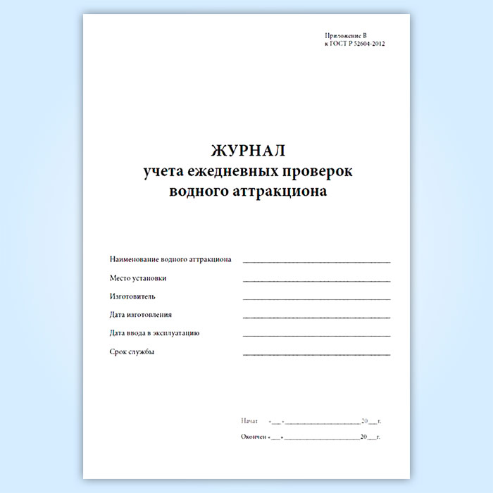 Журнал учета ежедневных проверок водного аттракциона в Химках купить