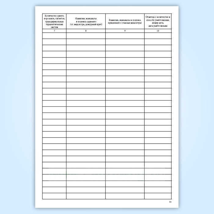 Журнал учета неиспользованных рецептурных бланков на наркотическое средство или психотропное вещество и остатков неиспользованных наркотических средств и психотропных веществ, сданных доверенными лицами умерших больных, у главной медицинской сестры амбулаторного отделения медицинской организации в Химках купить
