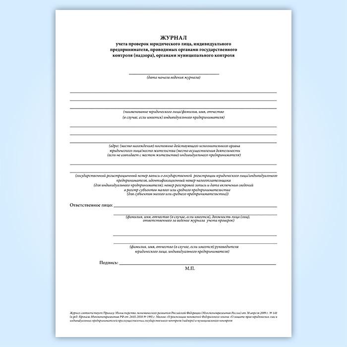 Журнал учета проверок юридического лица, индивидуального предпринимателя, проводимых органами государственного контроля (надзора), органами муниципального контроля (новый) в Химках купить