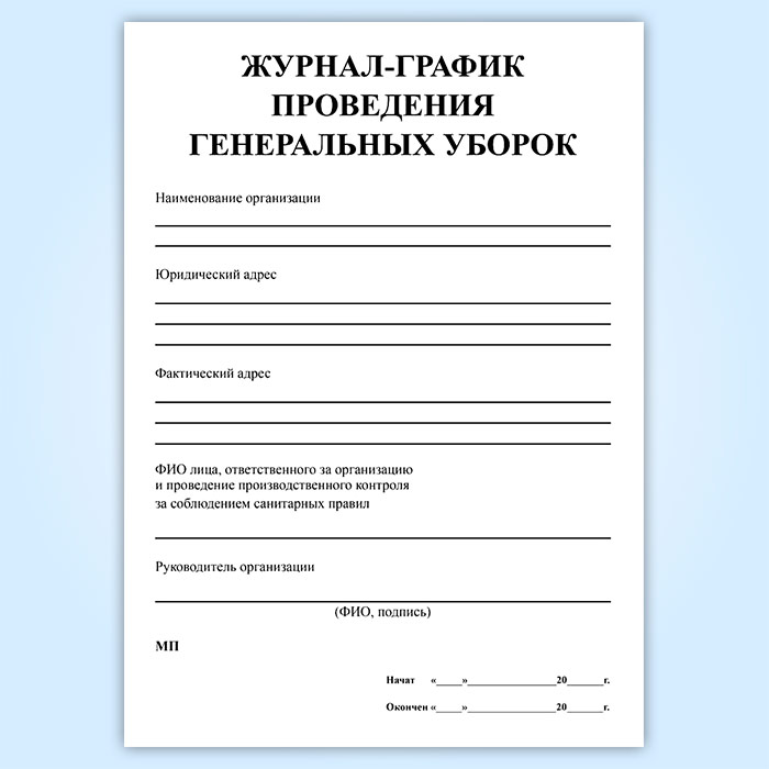 Журнал-график проведения генеральных уборок в Химках купить