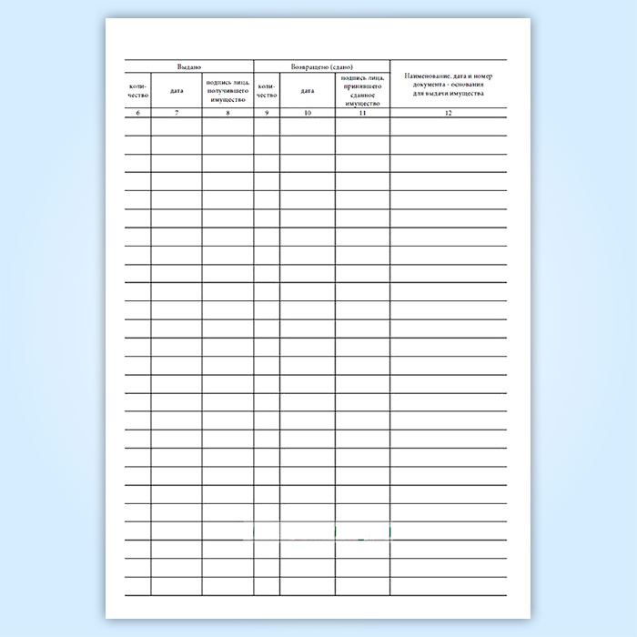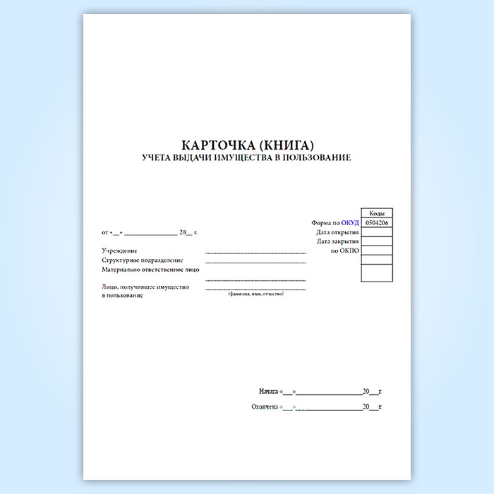 Карточка (книга) учета выдачи имущества в пользование (форма по ОКУД 0504206) в Химках купить