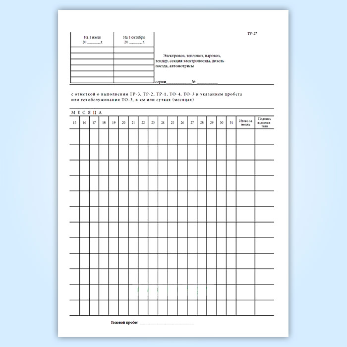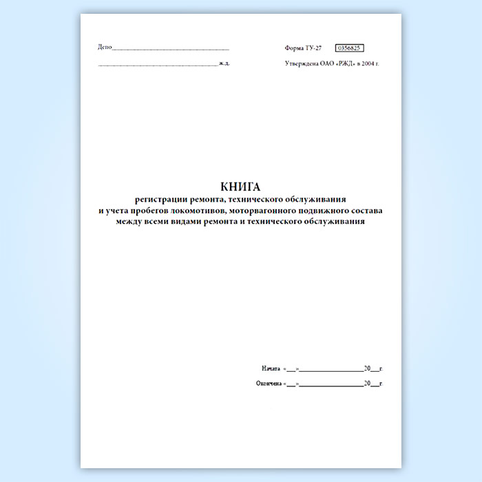 Книга регистрации ремонта, технического обслуживания и учета пробегов локомотивов, моторвагонного подвижного состава между всеми видами ремонта и технического обслуживания (форма ТУ-27) в Химках купить