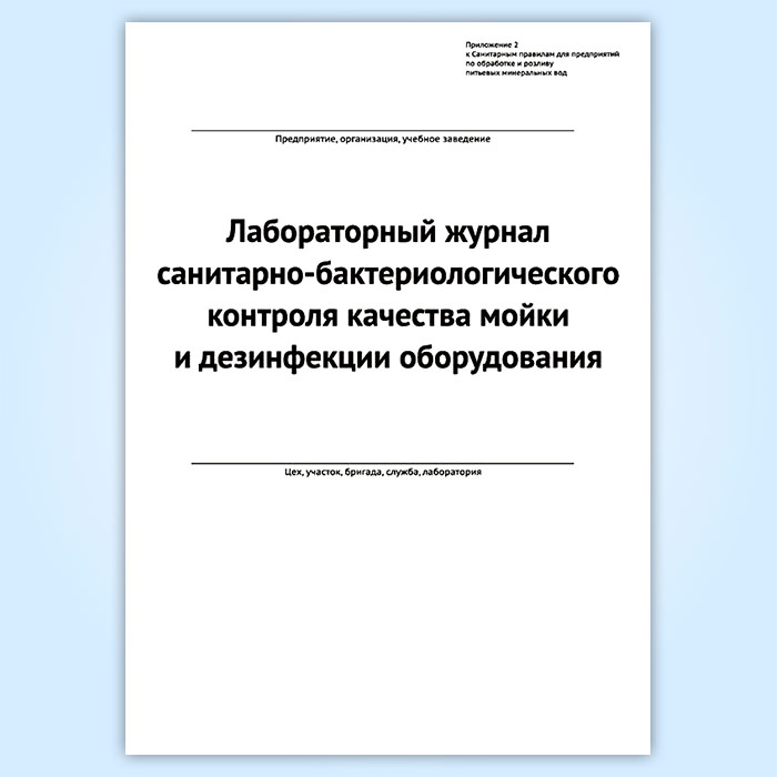 Лабораторный журнал санитарно-бактериологического контроля качества мойки и дезинфекции оборудования (форма 2) в Химках купить