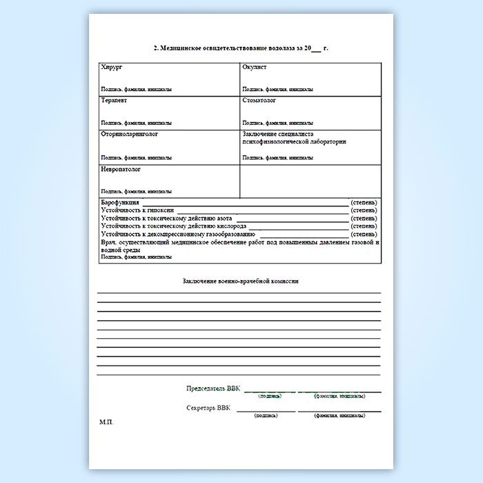 Медицинская книжка водолаза (МВД) в Химках купить