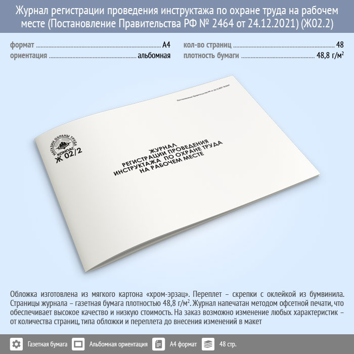 Журнал регистрации проведения инструктажа по охране труда на рабочем месте (Постановление Правительства РФ № 2464 от 24.12.2021) (48 стр., Ж02.2) в Химках купить
