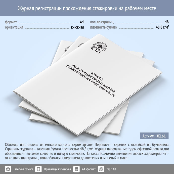 Журнал регистрации прохождения стажировки на рабочем месте (48 стр., Ж161) в Химках купить