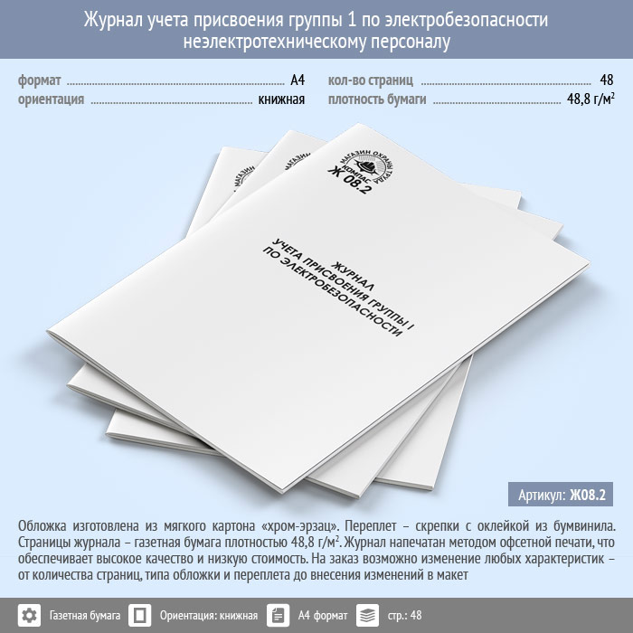 Журнал учета присвоения группы 1 по электробезопасности неэлектротехническому персоналу (48 стр., Ж08.2) в Химках купить