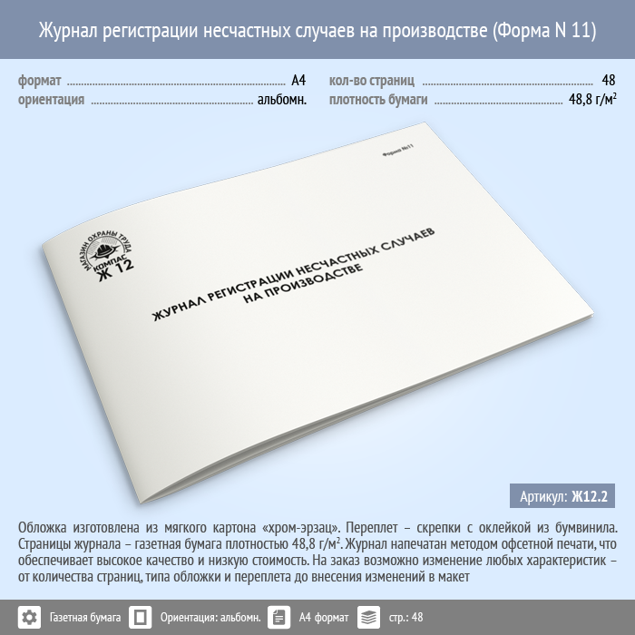 Журнал регистрации несчастных случаев на производстве (Форма N 11) (48 стр., Ж12.2) в Химках купить