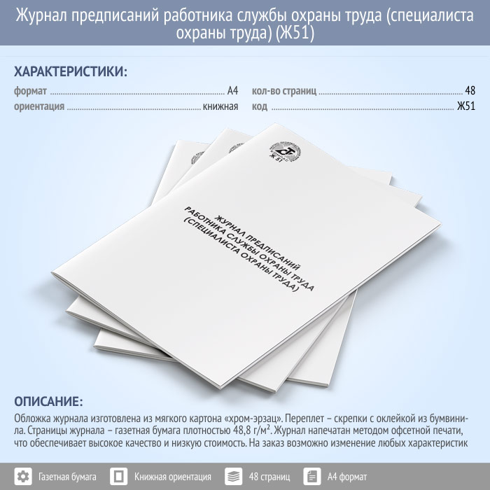 Журнал предписаний работника службы охраны труда (специалиста охраны труда, 48 стр., Ж51) в Химках купить