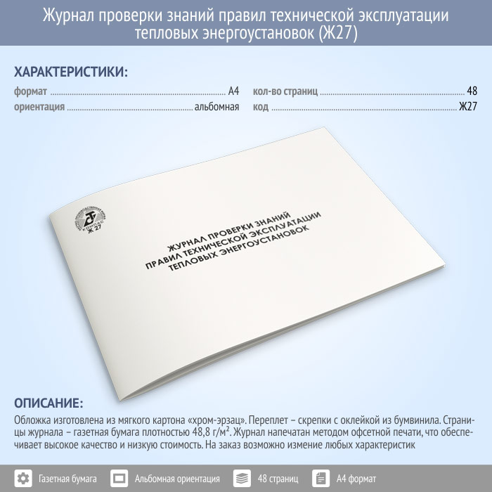 Журнал проверки знаний правил технической эксплуатации тепловых энергоустановок (48 стр., Ж27) в Химках купить