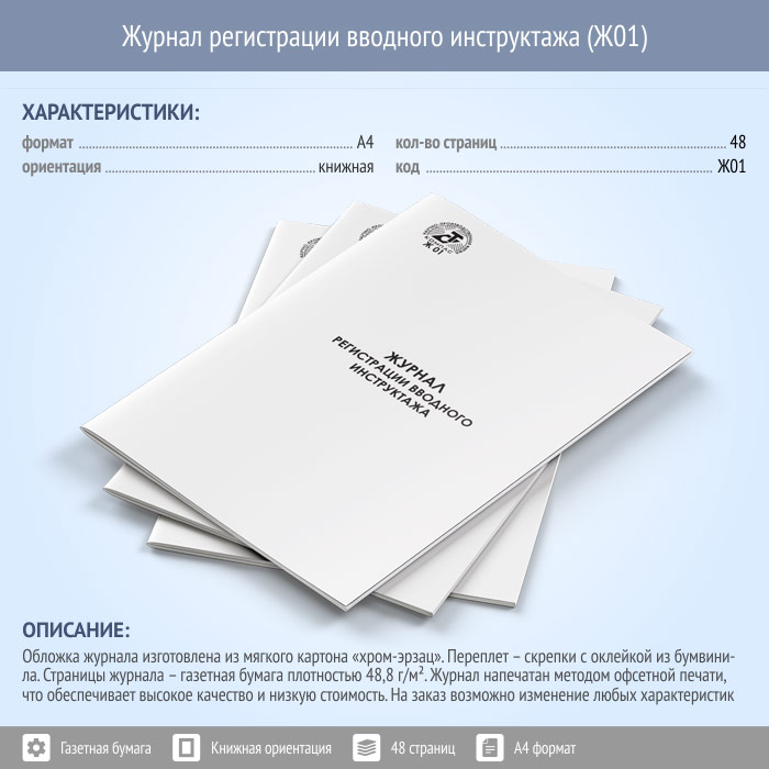 Журнал регистрации вводного инструктажа (48 стр., Ж01) в Химках купить