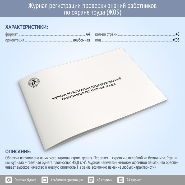 Журнал регистрации проверки знаний работников по охране труда (48 стр., Ж05) в Химках купить