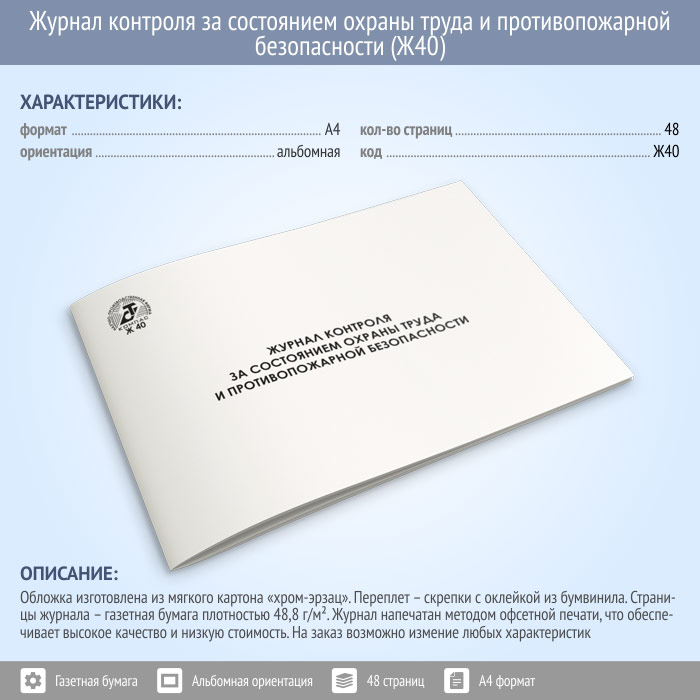 Журнал контроля за состоянием охраны труда и противопожарной безопасности (48 стр., Ж40) в Химках купить