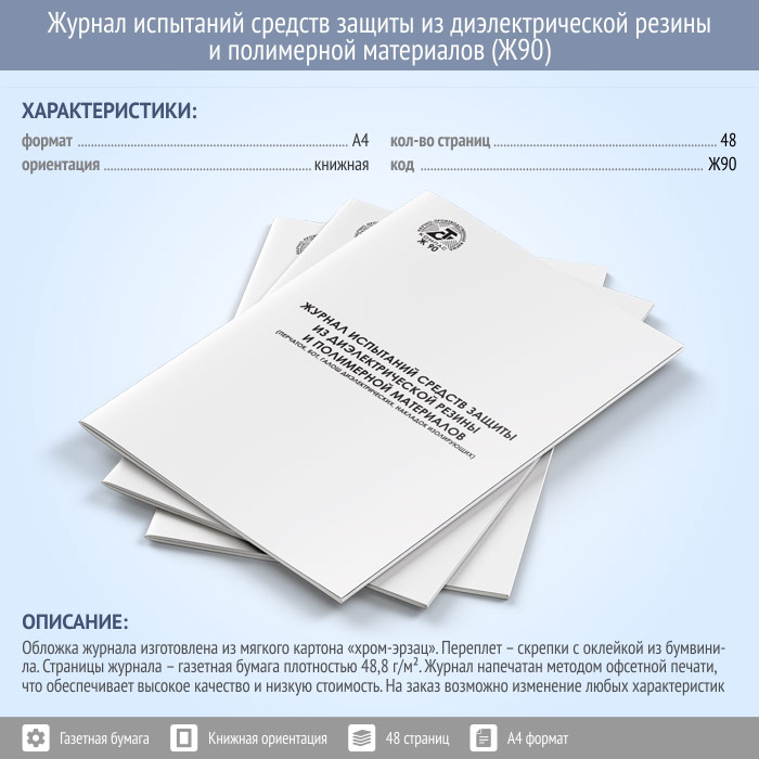Журнал испытаний средств защиты из диэлектрической резины и полимерных материалов (48 стр., Ж90) в Химках купить