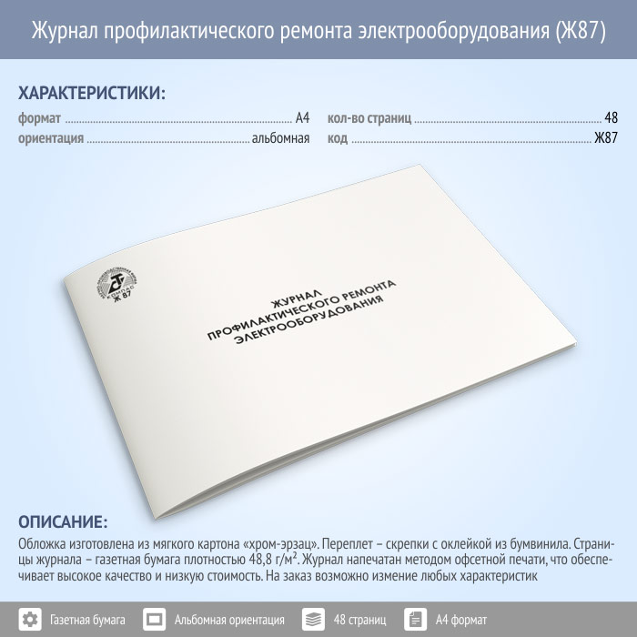 Журнал профилактического ремонта электрооборудования (48 стр., Ж87) в Химках купить