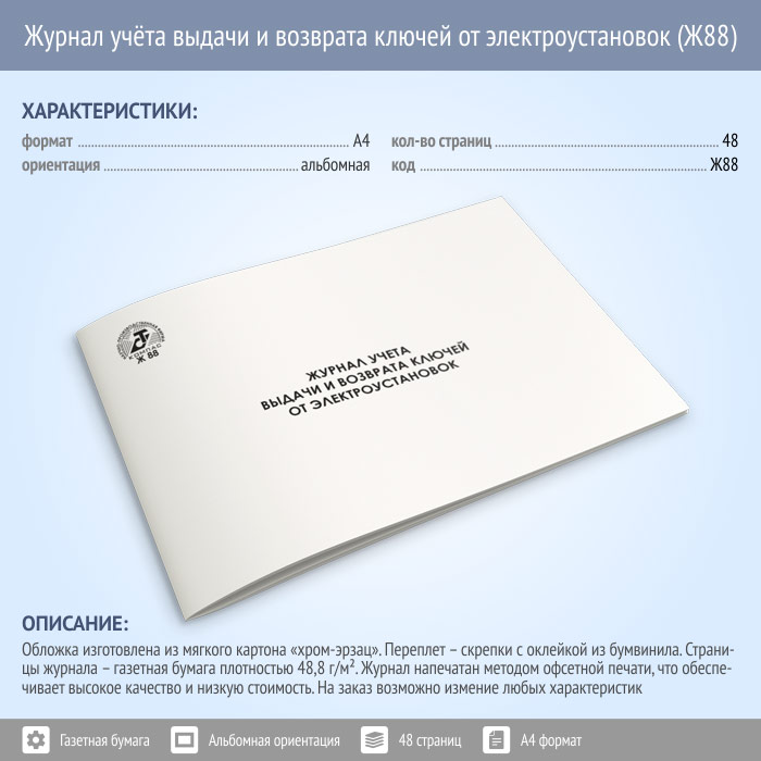 Журнал учета выдачи и возврата ключей от электроустановок (48 стр., Ж88) в Химках купить