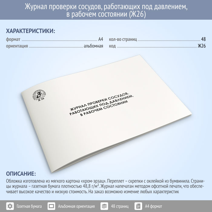 Журнал проверки сосудов, работающих под давлением в рабочем состоянии (48 стр., Ж26) в Химках купить