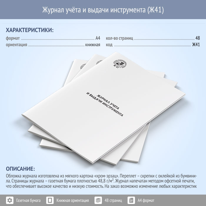 Журнал учета и выдачи инструмента (48 стр., Ж41) в Химках купить
