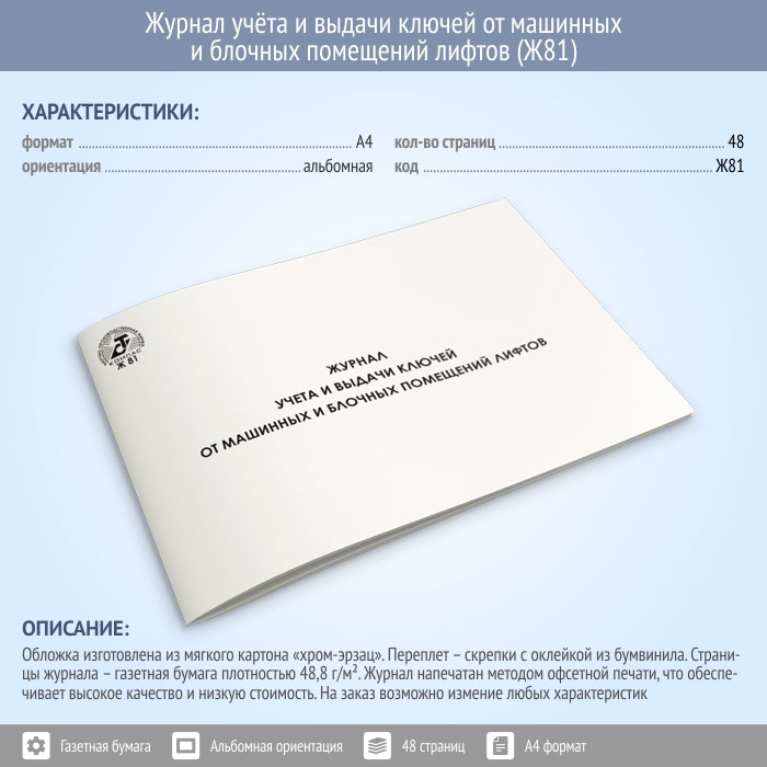 Журнал учета и выдачи ключей от машинных и блочных помещений лифтов (48 стр., Ж81) в Химках купить