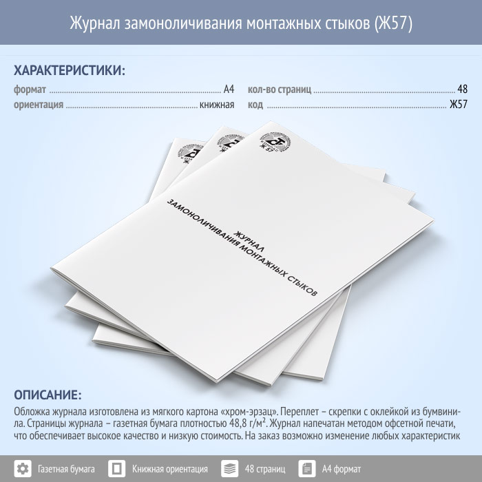 Журнал замоноличивания монтажных стыков (48 стр., Ж57) в Химках купить